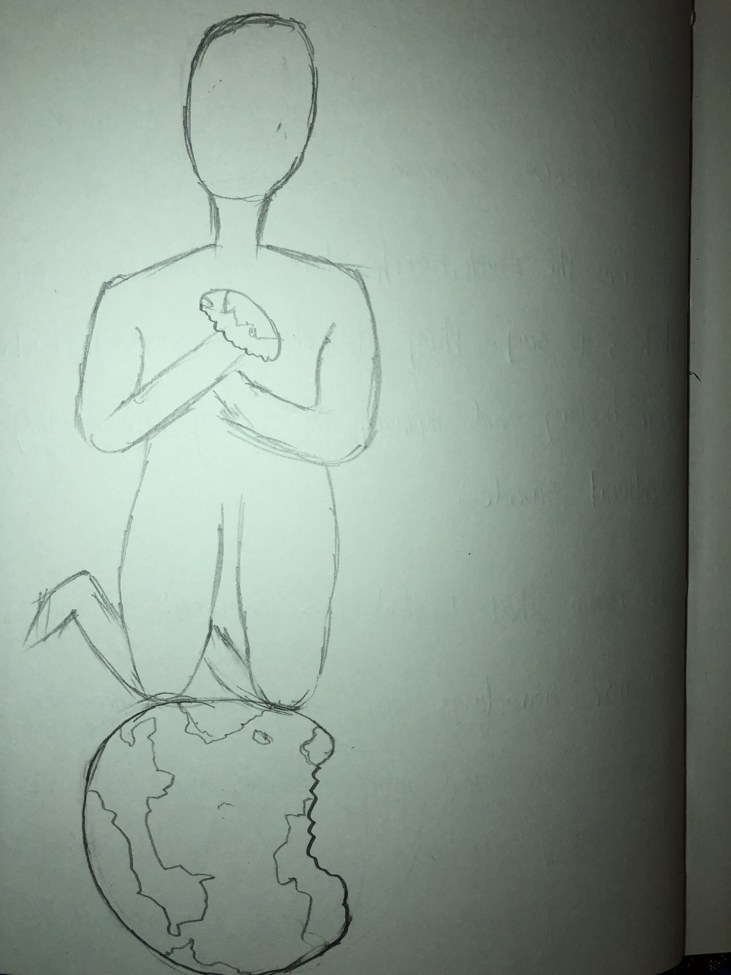 After the research that I have done so far, I think this work may affect mine because nowadays our environment problems are becoming more and more serious, just like we are eating our own dirt (the resources from the earth. Just like the picture that I drew below, we are eating and destory our planet. ), once we finished, we won’t be able to survive any more.